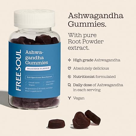 Sản phẩm Free Soul Ashwagandha High Strength Gummies | Delicious Ashwagandha Supplement with Pure Root Powder Extract | Vegan, Gluten-Free, Non-GMO | 60 Gummies đang được bán với giá ưu đãi là $14.5188 tại nước Anh.