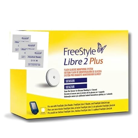 Free-style Libre 2 Plus Glucose Monitoring Sensor (1 Sensor) - Real-Time CGM for Diabetes Management, Waterproof, with Free Alcohol wipes