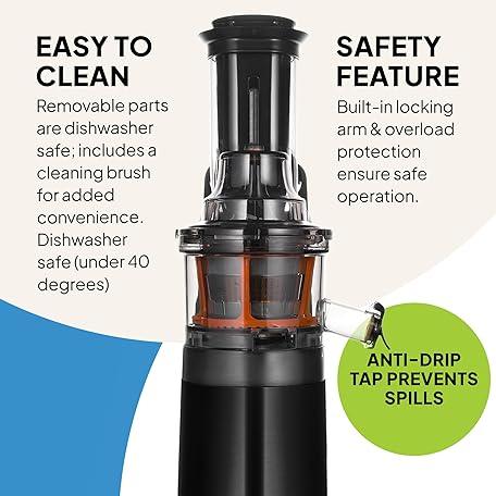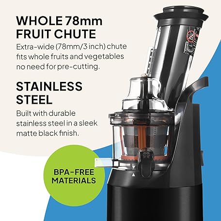Thông tin sản phẩm Fridja f1900 Cold Press Juicer, 240W Masticating Slow Juicer with 78mm (3”) BPA-Free Wide Chute, Black Stainless Steel body, Juice, Vegan Nut Milks, Sorbet, Ice Cream, Easy to Clean
