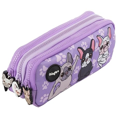 Fringoo® 3 Compartment Pencil Case for Kids School Stationery Holder Funny Cute