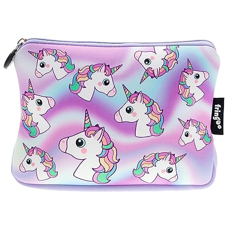 FRINGOO® Girls Boys Pencil Case Large Stationery Pouch Funny Cute Kids Unicorn Neoprene Zipper Closure School Accessories Pen Box 22 x 15 cm (Hologram Unicorn - Neoprene Pencil Case)