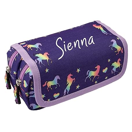 FRINGOO Personalised Kids Pencil Case 2 Compartment Large Stationery Pouch School Accessories Organiser Funny Cute School Pencil Case for Girls Boys (Unicorn)