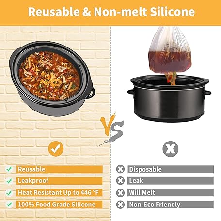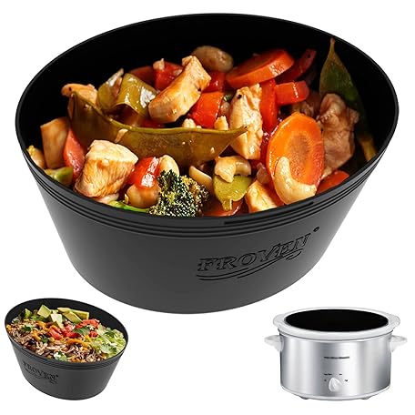 • FROVEN 4-4.5 Quart Silicone Slow Cooker Liners Oval – Thickened, Weighted & Sturdy Reusable Crockpot Inserts. Leakproof, Dishwasher Safe, Compatible with Most 4QT to 4.5QT Crock Pot Slow Cookers.
