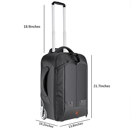 Thông tin sản phẩm FTF GEAR Wheeled Camera Backpack with Telescoping Handle, Detachable Padded Compartments for SLR/DSLR Cameras, Tripod, Lens and Other Accessories