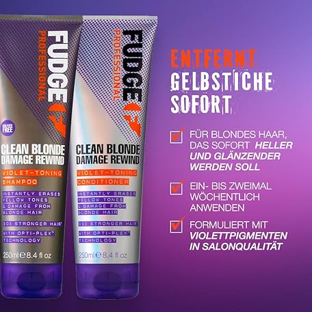 Thông tin sản phẩm Fudge Professional Clean Blonde Damage Rewind Shampoo, Bulk Size, Intense Purple Toning for Blonde hair, Bond Repair Technology, Sulfate Free, 1 Litre