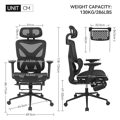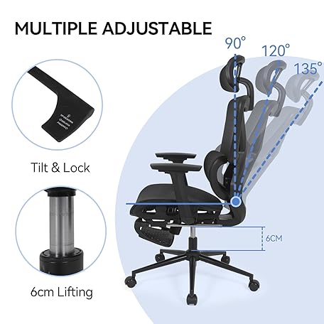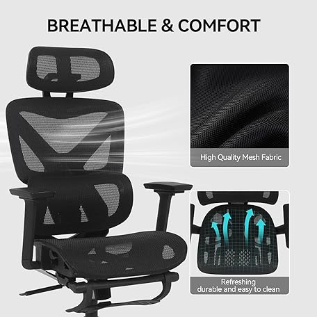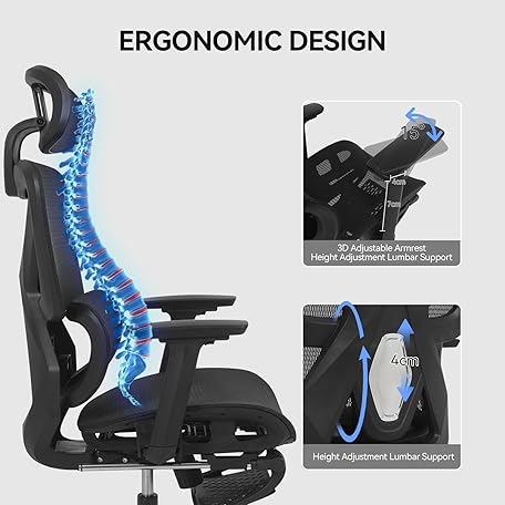 Thông tin sản phẩm Fullwatt Ergonomic Office Chair, Mesh Desk Chair with Adjustable Lumbar Support, 3D Armrests, Black