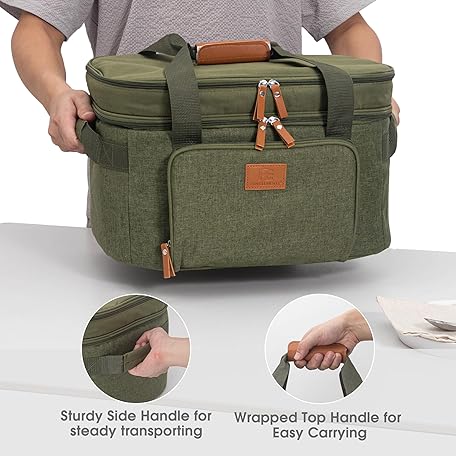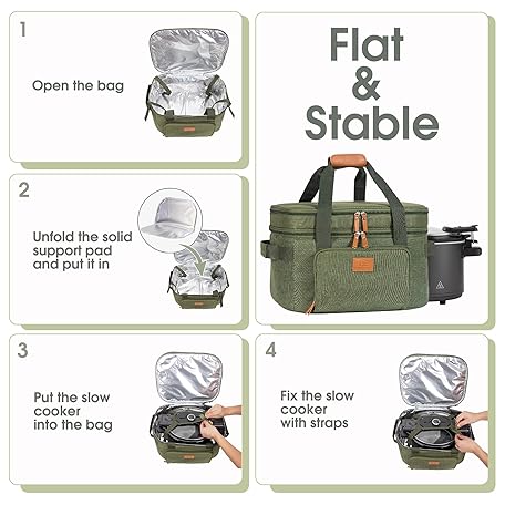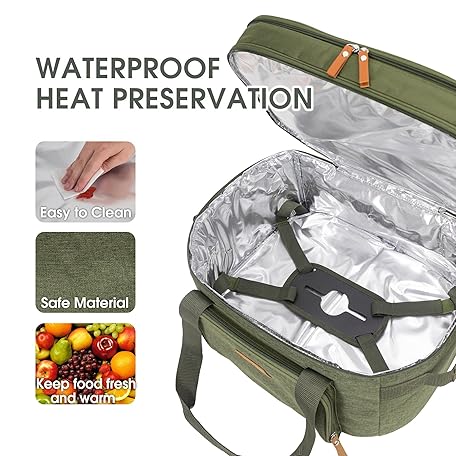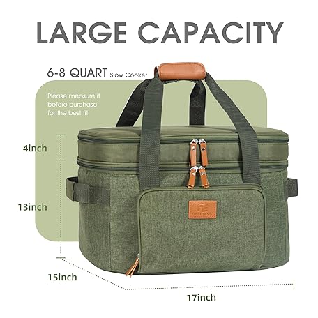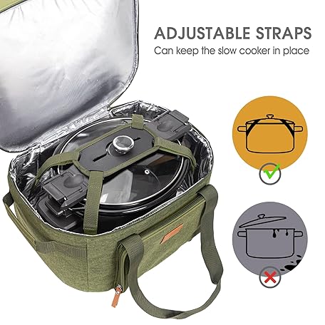 Thông tin sản phẩm FUN ELEMENTS Double Layer Slow Cooker Carrying Bag for 6-8 Quart Oval CrockPot, Insulated Travel Carrier with Support Pad and Adjustable Straps, Top Zip Compartment and Front Pocket for Utensils,Green