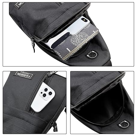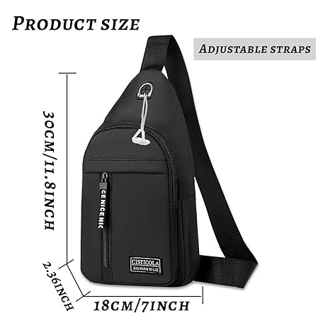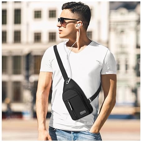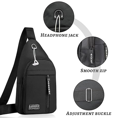 Thông tin sản phẩm FuninCrea Mens Sling Bag, Oxford Chest Bag Shoulder Bag with Adjustable Shoulder Strap, Zipped Man Bag Cross Body Bag with Headphone Hole for Travelling, Hiking, Sports
