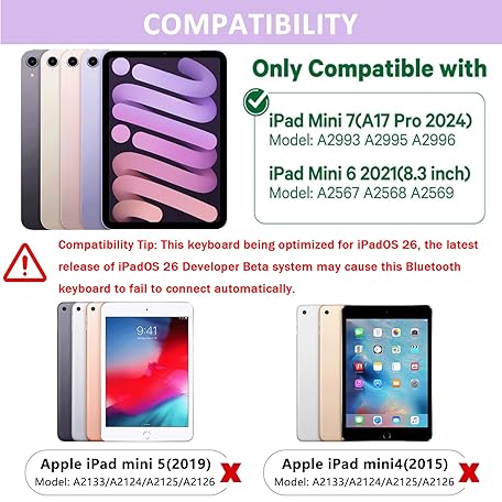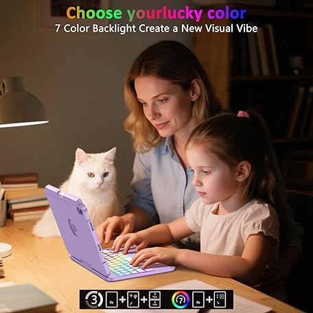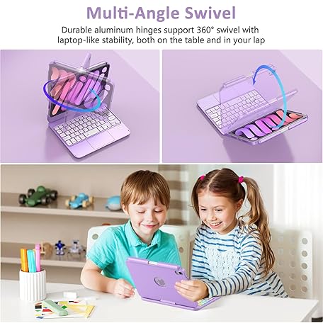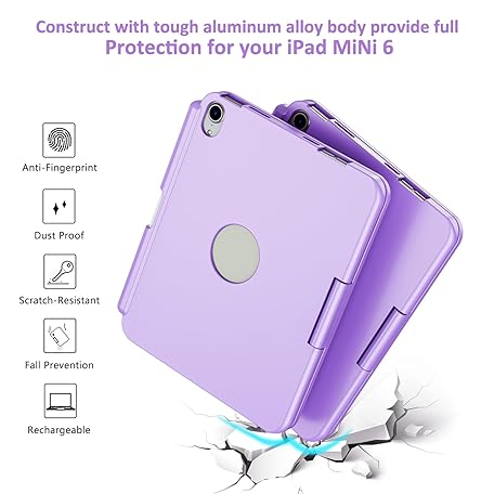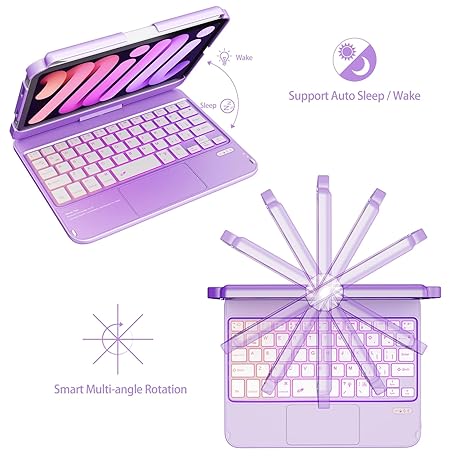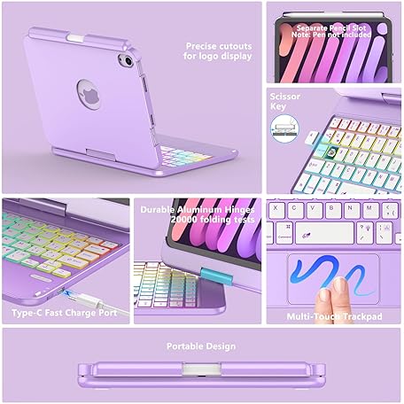 Thông tin sản phẩm FUWANG Touchpad Keyboard Case for iPad mini 7 A17 Pro 2024 & Mini 6th Generation 2021 8.3 inch - 360° Rotate 7 Color Backlit Keyboard for iPad mini 7th 6th Generation with Pencil Holder, Purple