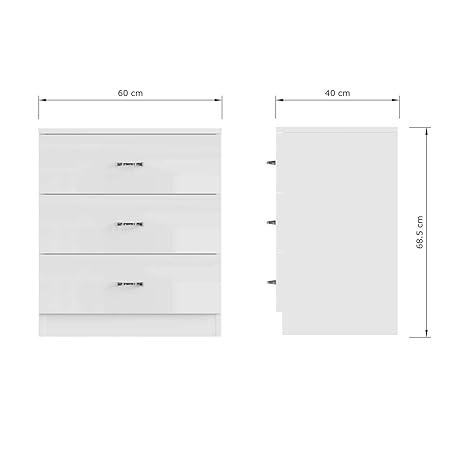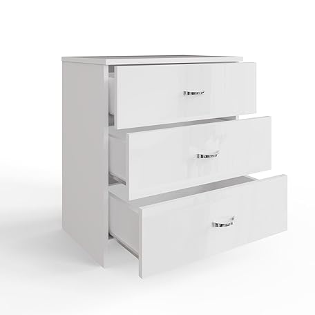 Sản phẩm FWStyle White Gloss 3 Drawer Chest. Large drawers. Matt White Frame. W60 x D40 x H68.5cm đang được bán với giá ưu đãi là $87.418 tại nước Anh.