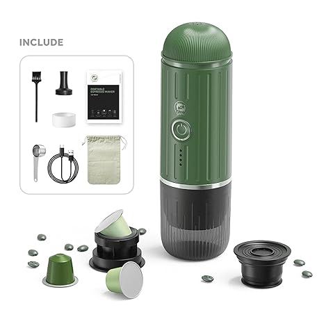 Sản phẩm FXBSQF Portable Electric Espresso Machine,Travel Coffee Maker for Camping,Car Coffee Maker Self-Heating with USB-C, 12V, With Ground Coffee & NS Capsule for RV, Hiking, Office(Green) đang được bán với giá ưu đãi là $102.2856 tại nước Anh.
