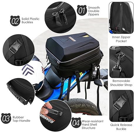 Sản phẩm G-raphy Motorcycle Saddle Bag Extendable Travel Luggage Hardshell Motorbike Tail Pack Waterproof Dual Use Motorcycling Backpack Rear Seat Helmet Case đang được bán với giá ưu đãi là $56.3421 tại nước Anh.