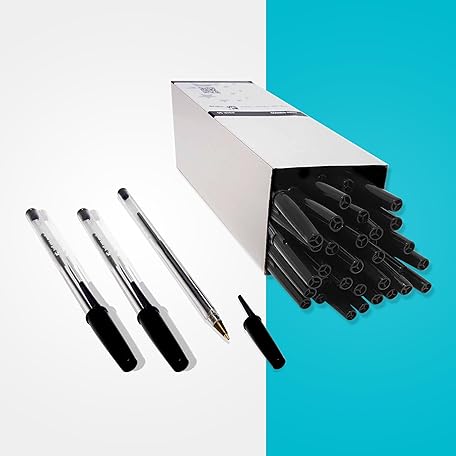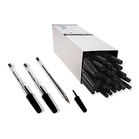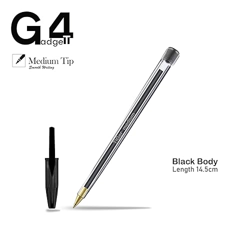 G4GADGET Pack of 50 Black Pens - Medium Tip Fluent Smooth Writing Black Biro Ballpoint Pens