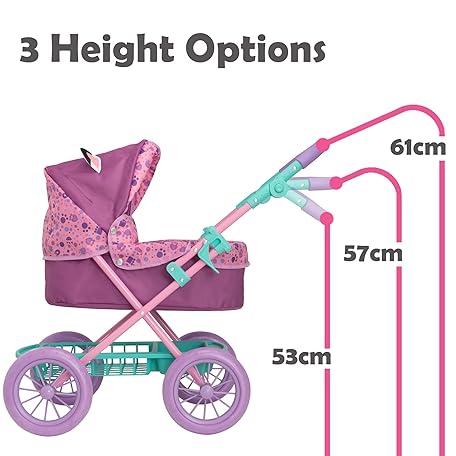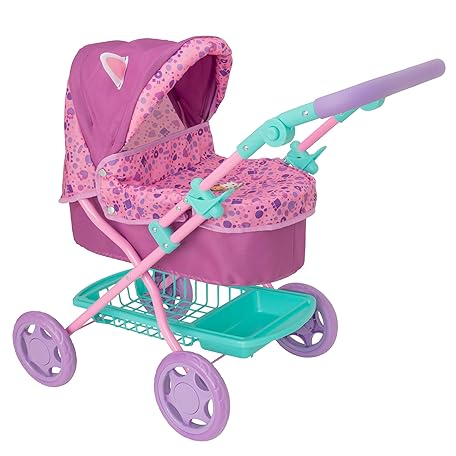 Thông tin sản phẩm Gabby’s Dollhouse Junior Roamer Dolls Pram in Pink & Purple | Foldable Doll Stroller with Adjustable Handle, Hood, Removable Apron & Storage Basket | Toy Pushchair for Girls & Boys Ages 3+