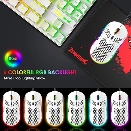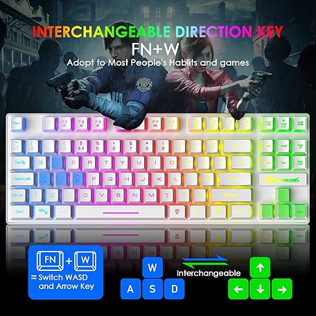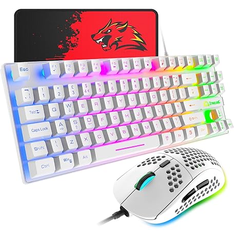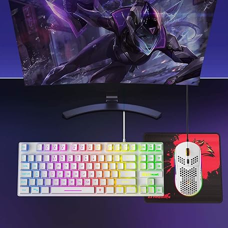 Thông tin sản phẩm Gaming Keyboard & Mouse 88 Keys Rainbow Backlit USB Mechanical feel Ergonomic Keyboard + RGB 6400DPI Ultra-Light Honeycomb Shell Gaming Mouse,for PS4,PS5,Xbox,PC,Laptop,MAC, QWERTY UK Layout, White