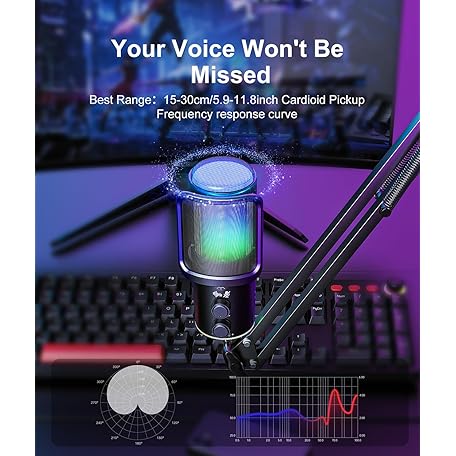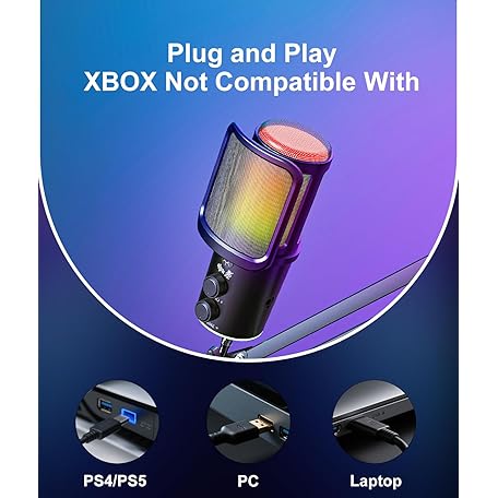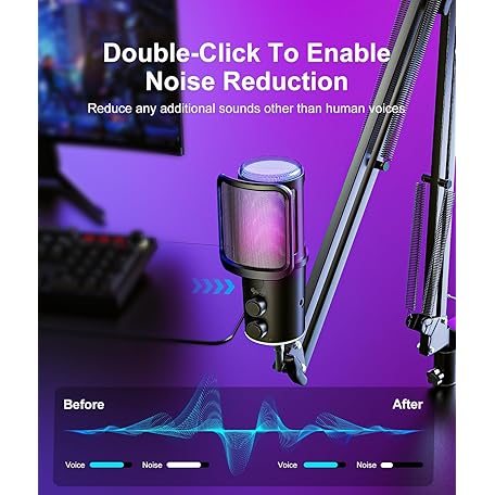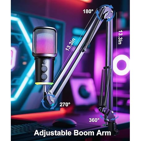 Thông tin sản phẩm Gaming USB Microphone, Noise Cancellation Condenser Mic with Mute,Boom Arm Mic-Reverb Adjustment, Monitoring for Streaming, Podcasting, Discord, YouTube,PC, Computer, PS4, PS5, Mac