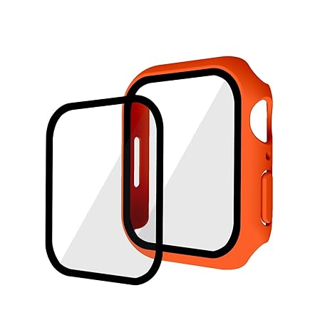 GANGANPRO 2 In 1 Design Hard PC Case with Tempered Glass Screen Protector for Apple Watch 7/8/9,Ultra-Thin Scratch Resistant Smartwatch Cover for iWatch 41mm Accessories - Orange
