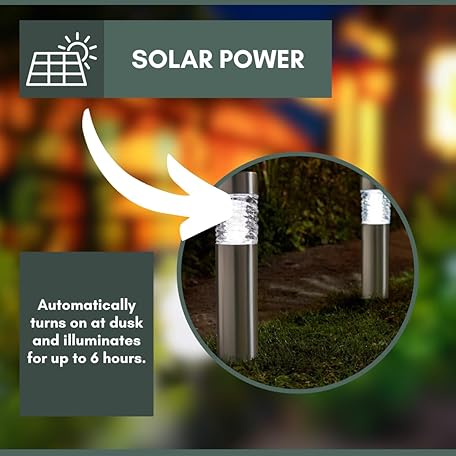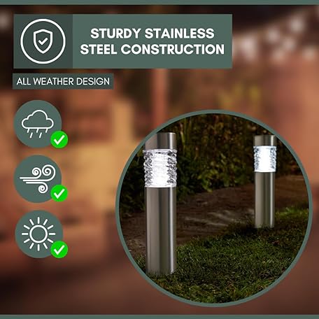 Sản phẩm Garden Mile 4pc Stella Bollard Solar Outdoor Lights Stainless Steel Garden Solar Lights Outdoor Waterproof Ideal for Driveway Pathway Lighting Flowerbeds Patio Lawn Heavy Duty Outdoor Garden Lighting đang được bán với giá ưu đãi là $36.733 tại nước Anh.
