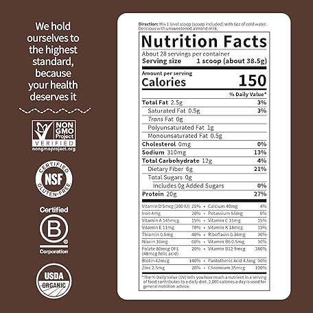 Thông tin sản phẩm Garden of Life Organic Vegan Meal Replacement - Raw Plant Based Protein Powder, Chocolate, 35.9oz (2lb 4oz/1,017g) Powder