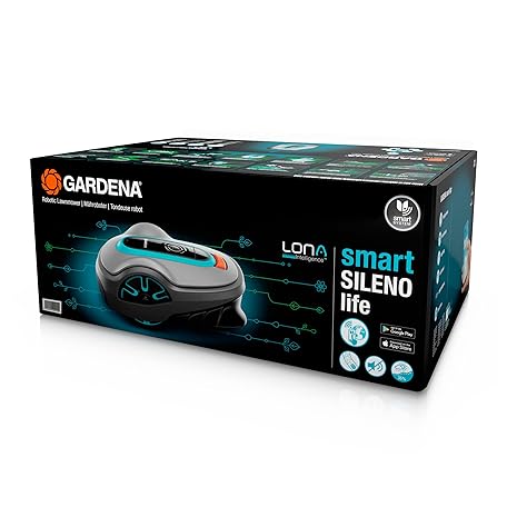 Gardena smart SILENO life 1000 m² robot lawnmower set: Innovative LONA AI technology, controlled via app, SensorControl, for slopes up to 35%, incl. smart gateway, EN version, UK plug (19702-68)
