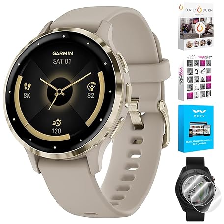 Garmin 010-02785-02 Venu 3S Health Fitness GPS Smartwatch Gold Steel Bezel w/French Gray Case 41mm | Official USA Partner Model | Bundle with Deco Screen Protector, Fitness & Wellness Suite