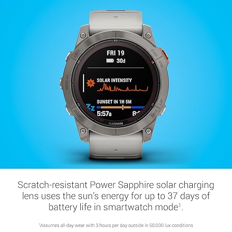 Thông tin sản phẩm Garmin fēnix 7X Pro Sapphire Solar, Multisport GPS Smartwatch, Built-in Flashlight, Solar Charging Capability, Fog Gray/Ember Orange