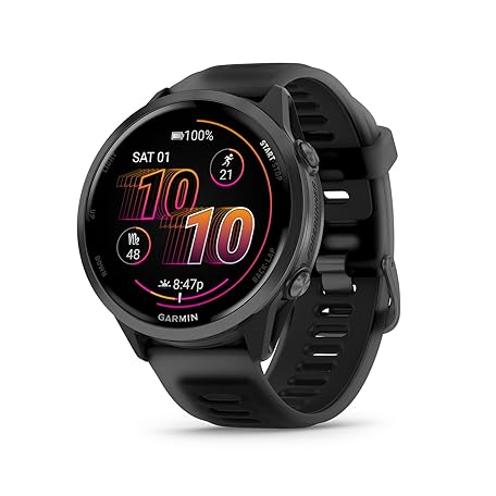 Garmin Forerunner® 570, 47mm, Advanced GPS Running and Triathlon Smartwatch, AMOLED Display, Training and Recovery Features, Slate Gray Aluminum with Translucent Black/Black Band
