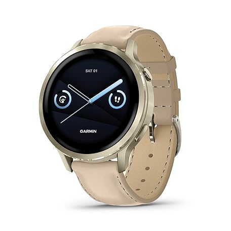 Thông tin sản phẩm Garmin Venu® 4, 41mm, Advanced Health and Fitness GPS Smartwatch, Bright and Colorful Display, Built-in Flashlight, 10 Days of Battery Life, Lunar Gold with Bone Silicone Band/Light Sand Leather Band