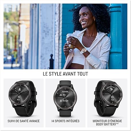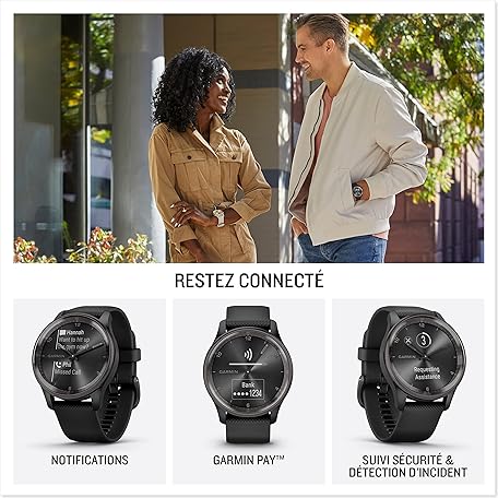 Garmin vívomove Trend, 40mm Stylish Hybrid Smartwatch with Health and Fitness functions, Dynamic Watch Hands, Touchscreen Display and up to 5 days battery life, French Grey