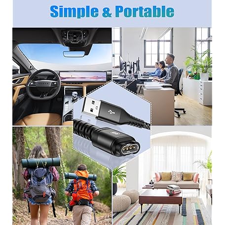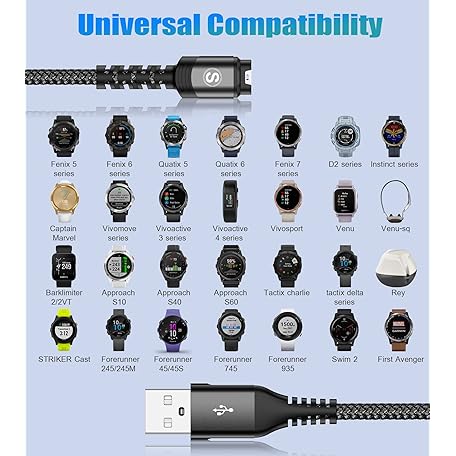 Garmin Watch Charger Cable [2-Pack,4ft] Compatible with Garmin Fenix 8 7 7X Pro 6 6X 5 5S 5X,Forerunner 965 955 945 265 245 55,Approach S70 S62 S60,Vívoactive 5 4s 3,Venu Sq 3 2S,Epix Instinct Tactix