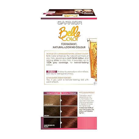 Thông tin sản phẩm Garnier Belle Color Red Hair Dye Permanent, Natural looking Hair Colour, up to 100% grey coverage - 5.5 Natural Light Auburn Pack of 3