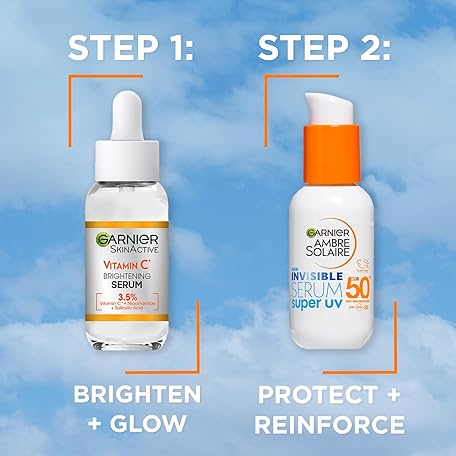 Sản phẩm Garnier Daily Glow & Protect Duo for Face: Brightening Vitamin C Serum for Anti-Dark Spots & Ambre Solaire SPF50+ Super UV Invisible Serum Moisturiser (2 X 30ml) đang được bán với giá ưu đãi là $17.8106 tại nước Anh.