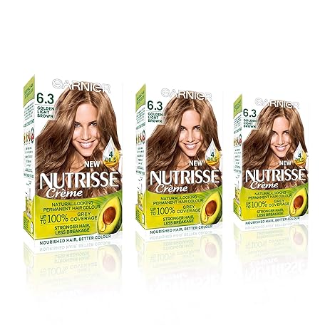 Garnier Nutrisse 6.3 Golden Light Brown Permanent Hair Dye, Pack of 3
