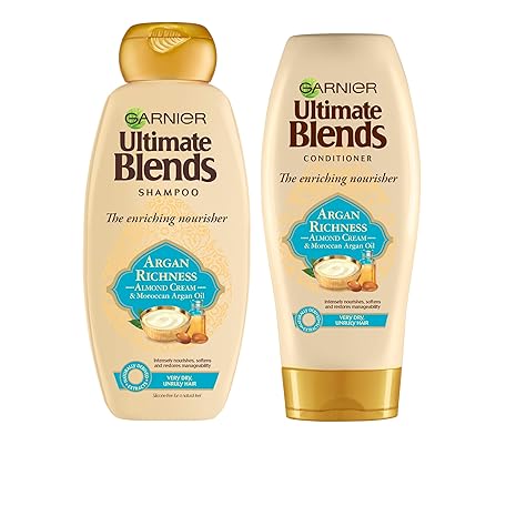 Sản phẩm Garnier Ultimate Blends Shampoo & Conditioner Set | Argan Richness With Moroccan Argan Oil and Almond Cream Nourishing for Dry, Unruly Hair | 360 ml | đang được bán với giá ưu đãi là $14.3553 tại nước Anh.