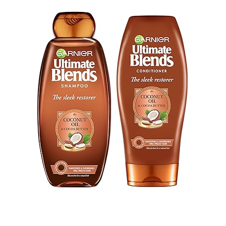 Sản phẩm Garnier Ultimate Blends Shampoo & Conditioner Set | Sleek Restorer With Coconut Oil & Cocoa Butter Smoothing for Sleek, Smooth, Frizz-Free Hair | 360 ml | đang được bán với giá ưu đãi là $13.7558 tại nước Anh.