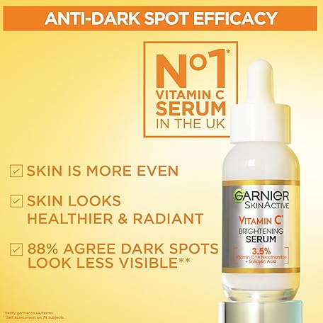 Sản phẩm Garnier Vitamin C Brightening Serum for Face, with 4% Vitamin C, Niacinamide & Salicylic Acid, Brightens Skin, Reduces Dark Spots & Evens Skin Tone, Serum 30ml đang được bán với giá ưu đãi là $11.5431 tại nước Anh.