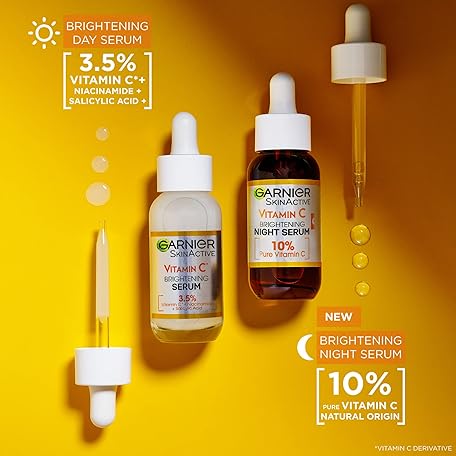 Sản phẩm Garnier Vitamin C Serum Set, Day & Night Serums for Face and Neck, Anti-Dark Spots, Smooths & Brightens, Vegan Formula, For Dull, Uneven Skin, Bundle 2 x 30ml đang được bán với giá ưu đãi là $25.833 tại nước Anh.