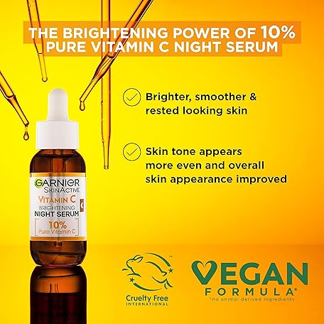 Thông tin sản phẩm Garnier Vitamin C Serum Set, Day & Night Serums for Face and Neck, Anti-Dark Spots, Smooths & Brightens, Vegan Formula, For Dull, Uneven Skin, Bundle 2 x 30ml