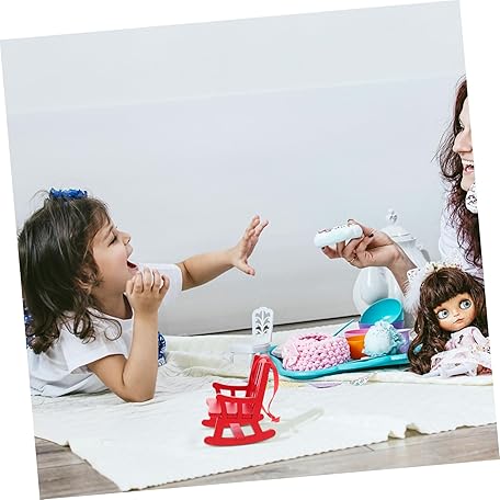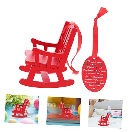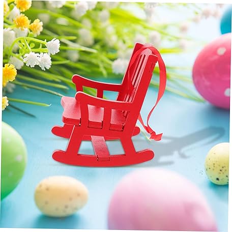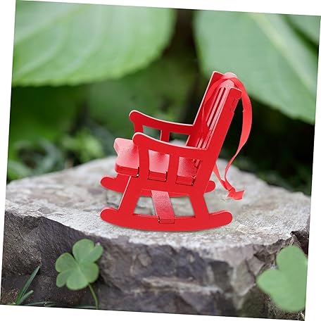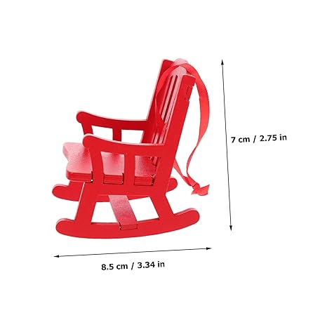 Thông tin sản phẩm GARVALON Mini Furniture Red Wooden Rocking Chair Model for Boys and Girls, Small Room Decoration Accessory, Wood Craft Dollhouse Ornament for Bedroom
