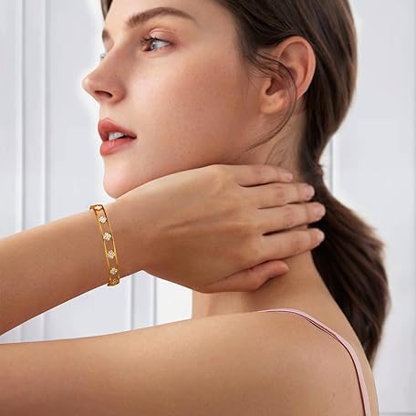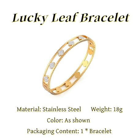 Thông tin sản phẩm GAUEIOUR Lucky Leaf Bracelet,Personalized Stainless Steel Hollow Lucky Bracelet, Minimalist Style Zircon Luxury Jewelry, Fashionable Women/Girls Jewelry Gifts (Gold)