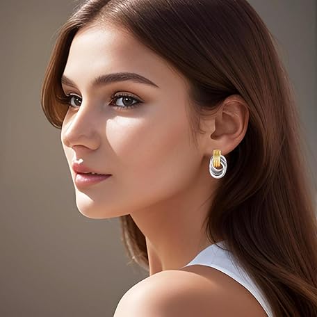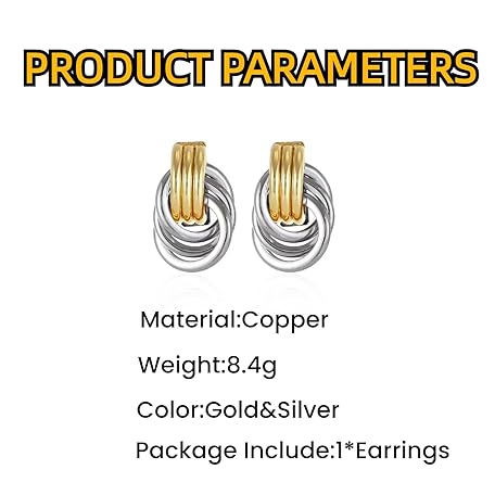 Thông tin sản phẩm GAUEIOUR Silver Gold Statement Geometric Dangle Drop Earrings,Vintage Metal French Style Earrings,Two-Tone Multi-layer Round Hanging Earrings Fashion Geometric Chunky Knot Earring for Women Jewelry