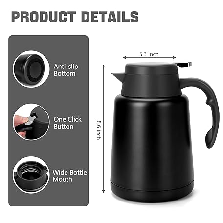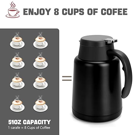 Thông tin sản phẩm GearRoot 51oz Thermal Coffee Carafe Coffee Thermos, Stainless Steel Coffee Carafes for Keeping Hot Drinks, Double Walled Thermal Pot Insulated Pitcher for Coffee, Hot Water, Tea, Hot Beverage (Black)