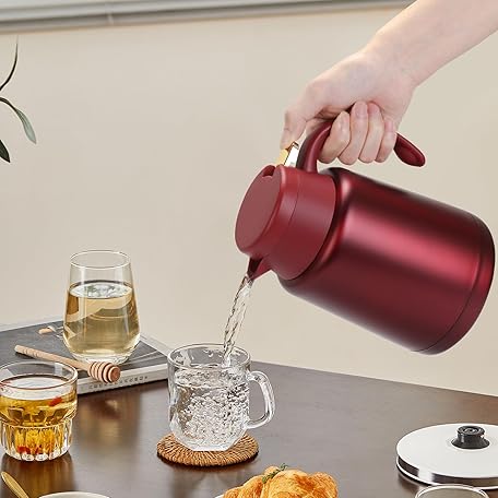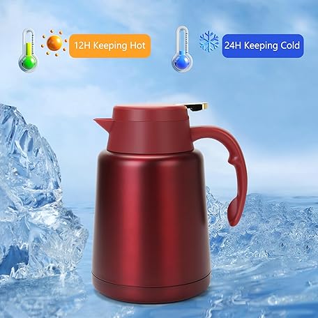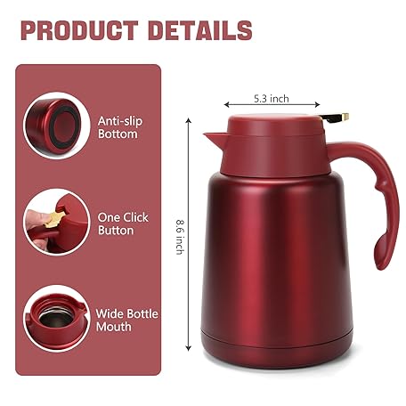 Thông tin sản phẩm GearRoot 51oz Thermal Coffee Carafe Coffee Thermos, Stainless Steel Coffee Carafes for Keeping Hot Drinks, Double Walled Thermal Pot Insulated Pitcher for Coffee, Hot Water, Tea, Hot Beverage (Red)