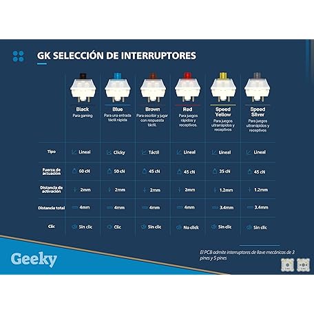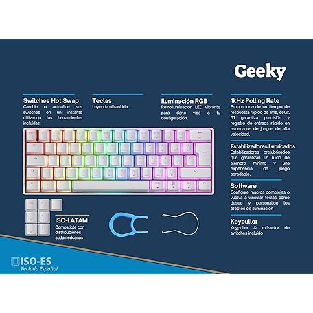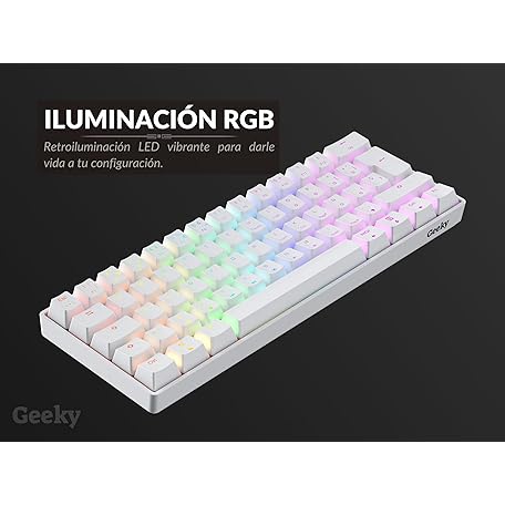 Thương hiệu Geeky là cái tên nổi tiếng được rất nhiều khách hàng trên thế giới chọn lựa. Với kiểu dáng đẹp mắt, sang trọng, sản phẩm Geeky GK61 60% | Hot Swappable Mechanical Gaming Keyboard | 62 Keys Multi Color RGB LED Backlit for PC/Mac Gamer | ISO ES Spanish + LATAM Layout (White, Mechanical Black) là sự lựa chọn hoàn hảo nếu bạn đang tìm mua một món cho riêng mình.
