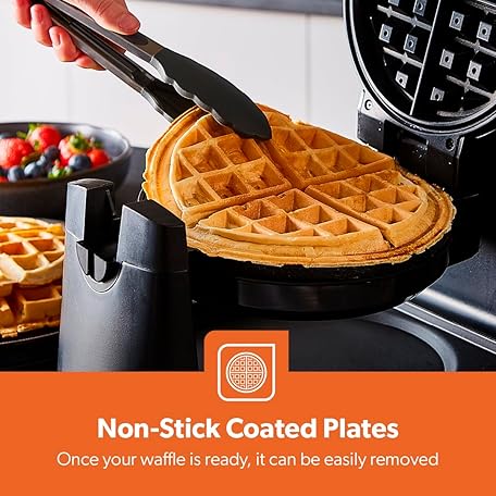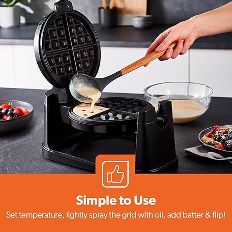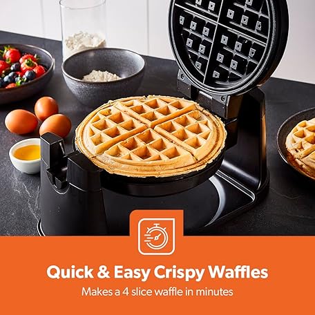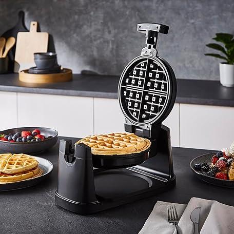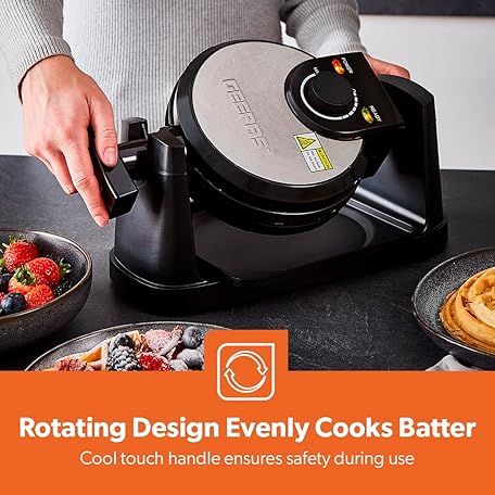 Thông tin sản phẩm Geepas 1000W Rotating Belgian Waffle Maker - Rotary Waffle Iron Machine with Non Stick Plates - Auto Temperature Control, Cooks up to 4 Waffles - Great for Sweet and Savoury/Belgian Waffles, Silver