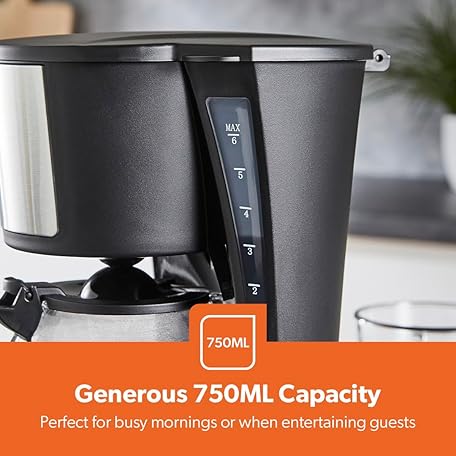 Thông tin sản phẩm GEEPAS 750ml Filter Coffee Machine | Fast Brewing 600W Coffee Maker for Instant Coffee, Espresso, Macchiato & More | Keep Warm & Anti-Drip Function Reusable Nylon Filter, Black