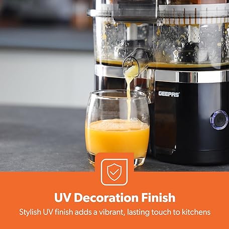 Thương hiệu GEEPAS là cái tên nổi tiếng được rất nhiều khách hàng trên thế giới chọn lựa. Với kiểu dáng đẹp mắt, sang trọng, sản phẩm GEEPAS Electric Citrus Juicer Machines | Dual Head Built-in Slicer One-Touch Operation | Fast Juice Extraction for Orange/Lemons/Lime | Twin Juice Maker BPA Free Easy Clean | 2 Year Warranty Black là sự lựa chọn hoàn hảo nếu bạn đang tìm mua một món cho riêng mình.