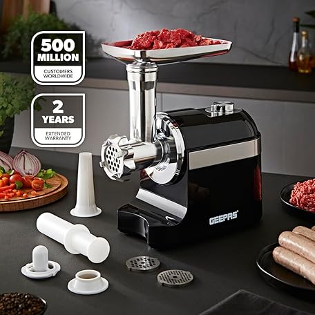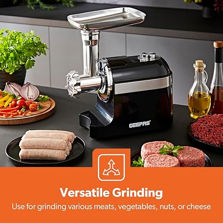 Thương hiệu GEEPAS là cái tên nổi tiếng được rất nhiều khách hàng trên thế giới chọn lựa. Với kiểu dáng đẹp mắt, sang trọng, sản phẩm Geepas Electric Meat Grinder | Stainless Steel Meat Mincer & Sausage Stuffer, Food Grinding Mincing Machine with Kibbe | 3 Different Cutting Plates, Reverse Function, 1800W, Plastic Housing, Black là sự lựa chọn hoàn hảo nếu bạn đang tìm mua một món cho riêng mình.