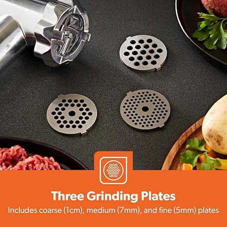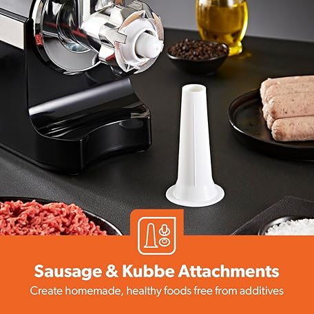 Thông tin sản phẩm Geepas Electric Meat Grinder | Stainless Steel Meat Mincer & Sausage Stuffer, Food Grinding Mincing Machine with Kibbe | 3 Different Cutting Plates, Reverse Function, 1800W, Plastic Housing, Black