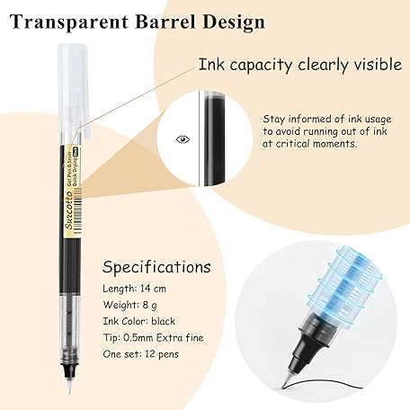 Thông tin sản phẩm Gel Ink Pens, 12pcs 0.5mm Black, Ultra-Fast Drying for Writing, Drawing, and Outlining - Suitable for Students and Office Workers